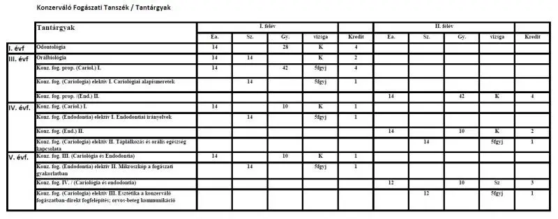 A szakma-specifikus tantárgyak elsajátítása során a hallgatók először a Konzerváló Fogászati Tanszék oktatóival, illetve tantárgyaival találkoznak.